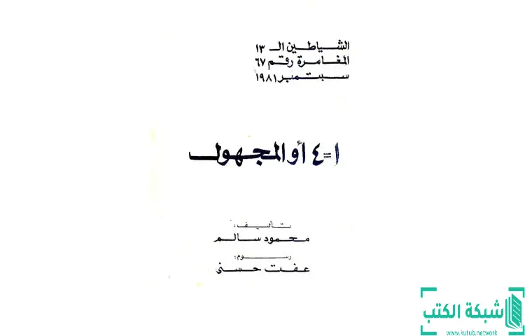 تحميل كتاب المجهول أو 1=4 PDF – محمود سالم – سلسلة الشياطين 13 للكاتب محمود سالم تقدم تجربة فريدة من نوعها في عالم الروايات البوليسية، حيث تنطلق الأحداث من لبنان وتنتقل إلى مصر، مما يضفي طابعًا عربيًا مميزًا على الحبكة. تتناول السلسلة مغامرات مجموعة من 13 فتى وفتاة، يمثل كل منهم بلداً عربياً، في مواجهة المؤامرات التي تستهدف الوطن العربي. يتسم السرد بالتحرك السريع والتشويق، مما يجعل القارئ مشدودًا إلى الأحداث والمواقف المثيرة.